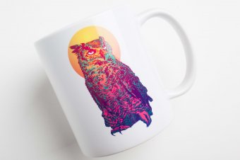The design is initially printed on a transfer foil and then printed on the product by applying heat. White products receive a transparent foil, color products a white transfer foil.